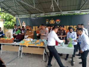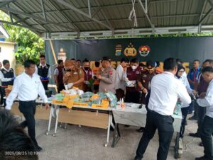 Nainggolan S.H, M.H, Kajari Batu Bara dan Kepala BNN Kabupaten Batu Bara memusnahkan barang bukti narkoba dari penangkapan yang dilakukan Polres Batu Bara di Halaman Polres Batu Bara, Kecamatan Lima Puluh, Senin (25/08/2025).