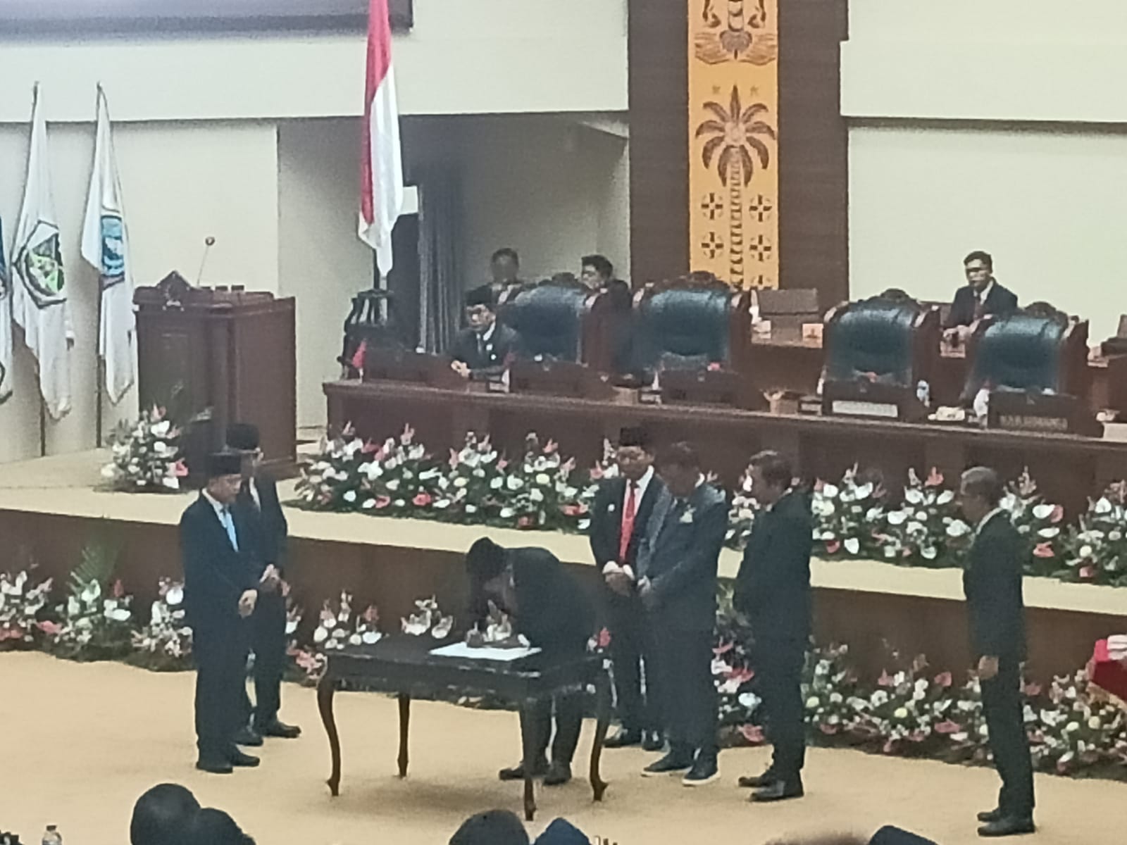 Rapat paripurna dipimpin langsung oleh Ketua DPRD Sulut dr. Fransiscus Andi Silangen, SPB’ KBD Didampingi langsung oleh wakil ketua Michaela Paruntu Stela Runtuwene dan Billy lombok secara resmi Mantan gubernur Sulut Olly Dondokambey menyerahkan jabatan kepada gubernur yang baru dilantik Mayjen TNI (purn) Yulius Selvanus Komaling, SE